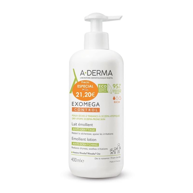 Esta leche emoliente alivia y reduce al instante las molestias, la irritación, la sequedad y el picor de la piel seca con tendencia al eczema atópico.