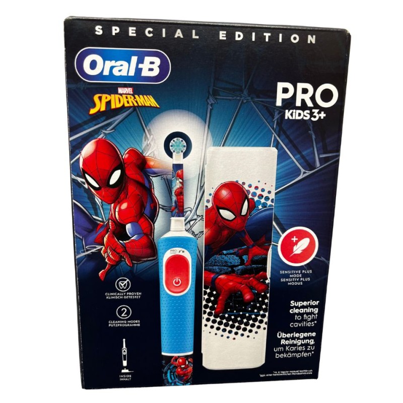 El cepillo eléctrico Oral-B Kids Spiderman ha sido diseñado especialmente para niños mayores de 3 años. Su cabezal redondo extrasuave cuida las encías delicadas y limpia eficazmente diente a diente. Incluye dos modos de cepillado (limpieza diaria y suave) y un diseño inspirado en Spiderman para convertir el cepillado en un momento divertido y educativo.