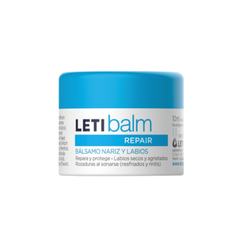 Letibalm Bálsamo Reparador Nariz y Labios es un producto de cuidado dermatológico diseñado para reparar, proteger y aliviar la piel seca o irritada de los labios y de la zona perinasal. Su formulación está indicada especialmente para situaciones en las que la piel se ve afectada por factores externos como el frío, el viento, la sequedad ambiental o los resfriados, ayudando a restaurar el confort cutáneo.