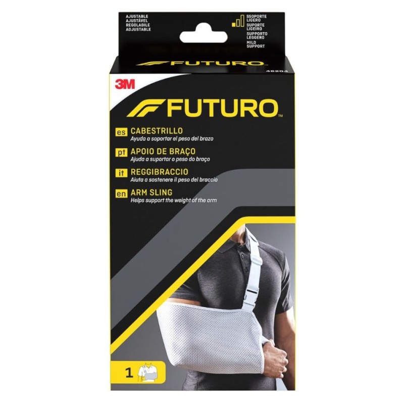 El Cabestrillo de Brazo FUTURO™ (3M) ofrece un soporte confiable y confortable durante el proceso de recuperación. Su diseño envolvente sostiene el brazo en una posición horizontal ideal, ayudando a reducir la fatiga y permitiendo continuar con las actividades diarias de manera más cómoda. La almohadilla de hombro acolchada distribuye la presión de forma suave, mientras que el ajuste personalizable se consigue con una correa adaptable y una práctica hebilla de liberación rápida, utilizable con una sola mano. Además, es unisex y apto para ambos brazos, derecho o izquierdo.