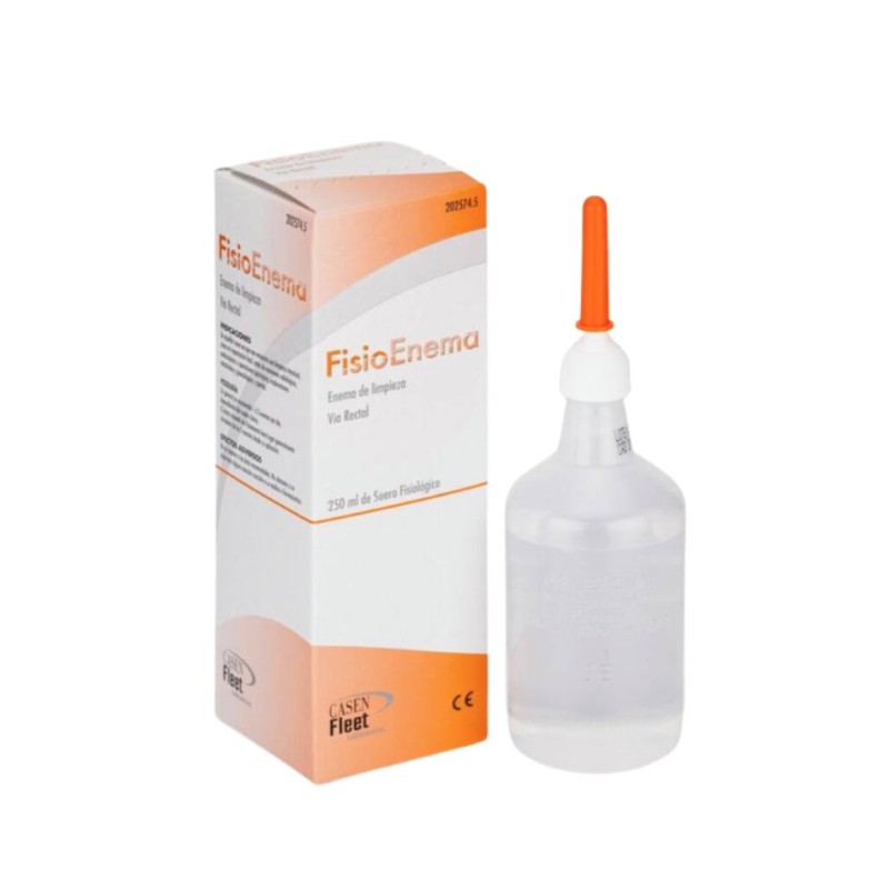 FisioEnema es un producto sanitario para la limpieza intestinal a base de suero fisiológico (cloruro sódico 0,9%), de administración rectal. Está indicado en niños mayores de dos años y adultos en casos en los que se requiera una limpieza intestinal, como impactación fecal, preparación para exámenes radiológicos o endoscópicos, cirugías o exploraciones. Su efecto suele iniciarse en unos 5 minutos tras la administración. Incluye cánula rectal prelubricada, válvula antirretorno y envase flexible listo para usar.