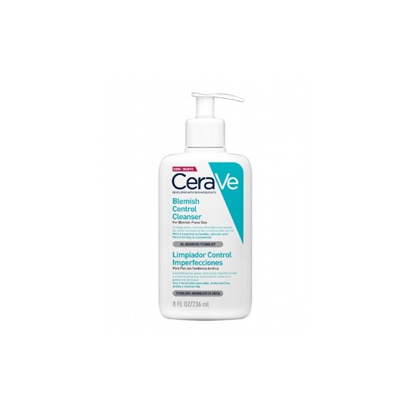 El CeraVe Limpiador Control Imperfecciones está especialmente formulado para pieles con tendencia acneica o con imperfecciones frecuentes. Gracias a su contenido en ácido salicílico (BHA), exfolia suavemente los poros obstruidos sin irritar la piel. Contiene además niacinamida calmante y ceramidas esenciales que refuerzan la barrera cutánea, manteniendo el equilibrio e hidratación de la piel.