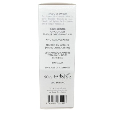Polvo absorbente y protector con extracto de semilla de pomelo, ideal para prevenir y aliviar irritaciones cutáneas y micosis. Envase de 50 g.