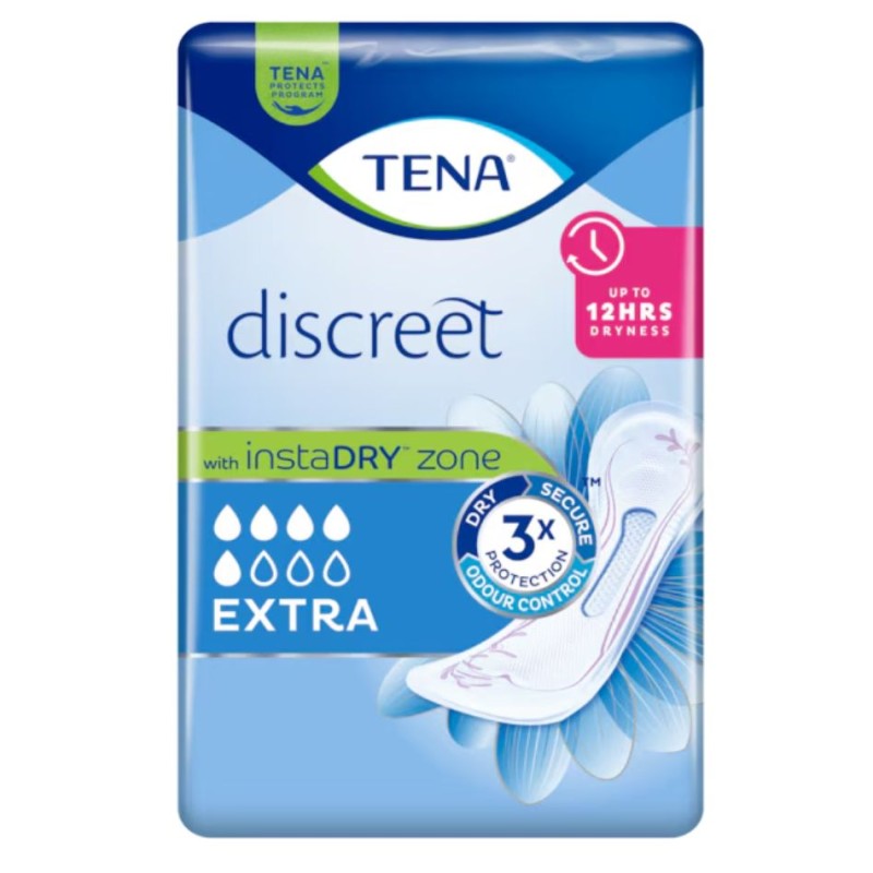 Se trata de la versión “Extra” de la gama TENA Discreet, pensada para mujeres con pérdidas de orina moderadas que buscan una solución cómoda, segura y discreta. Según la web oficial: “La compresa para la incontinencia TENA Discreet Extra ofrece máxima protección, por eso es ideal para las pérdidas de orina moderadas imprevistas.”