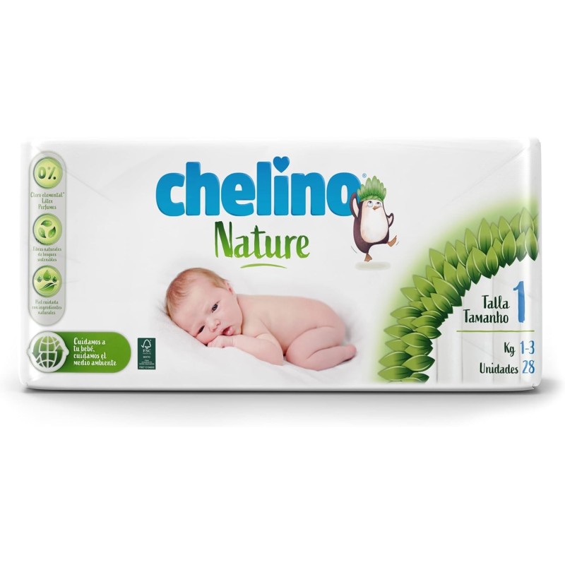 Los Pañales Chelino Nature Talla 1 – 28 Unidades están especialmente diseñados para recién nacidos de 2 a 5 kg, combinando una máxima protección con materiales respetuosos con la piel y el medio ambiente. Su núcleo absorbente de alto rendimiento mantiene la piel seca, mientras que su interior ultrasuave evita irritaciones.