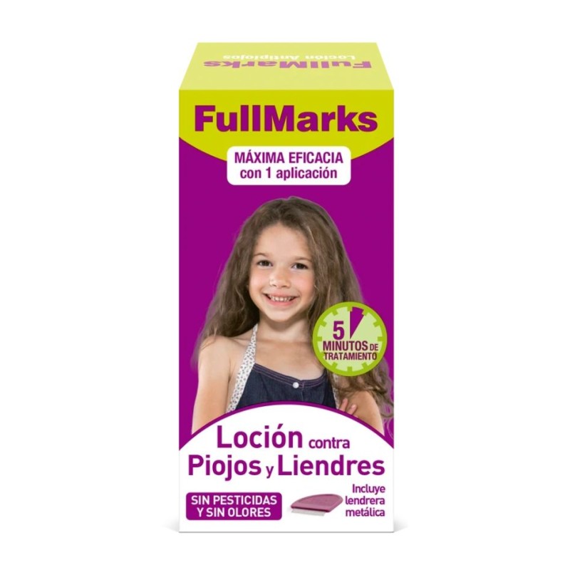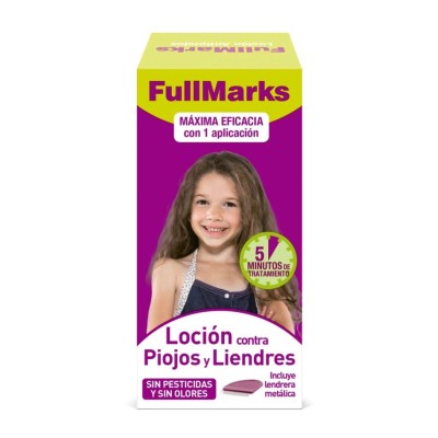 FullMarks Loción Antipiojos elimina eficazmente los piojos y facilita la eliminación de las liendres gracias a su fórmula sin insecticidas químicos. Actúa en tan solo 5 minutos provocando la deshidratación del piojo por acción física, sin riesgo de resistencias. Su textura facilita la aplicación y el peinado posterior con lendrera. Adecuado para adultos y niños a partir de 2 años. Testado dermatológicamente.