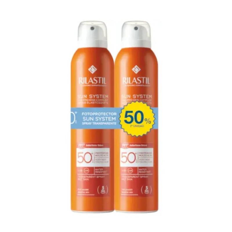Rilastil Sun System Duplo Spray Transparente SPF 50+ es un fotoprotector corporal de muy alta protección, ideal para pieles claras, sensibles o con tendencia a quemarse. Su fórmula transparente, ligera y de rápida absorción no deja residuo blanco, permitiendo una aplicación cómoda y uniforme.