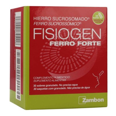 Fisiogen Ferro Forte 30 sobres es un complemento alimenticio a base de hierro sucrosomado® y vitamina C que favorece la formación de hemoglobina, el transporte de oxígeno y el correcto funcionamiento del sistema inmunitario. Ideal para personas con déficit de hierro o menor absorción intestinal.