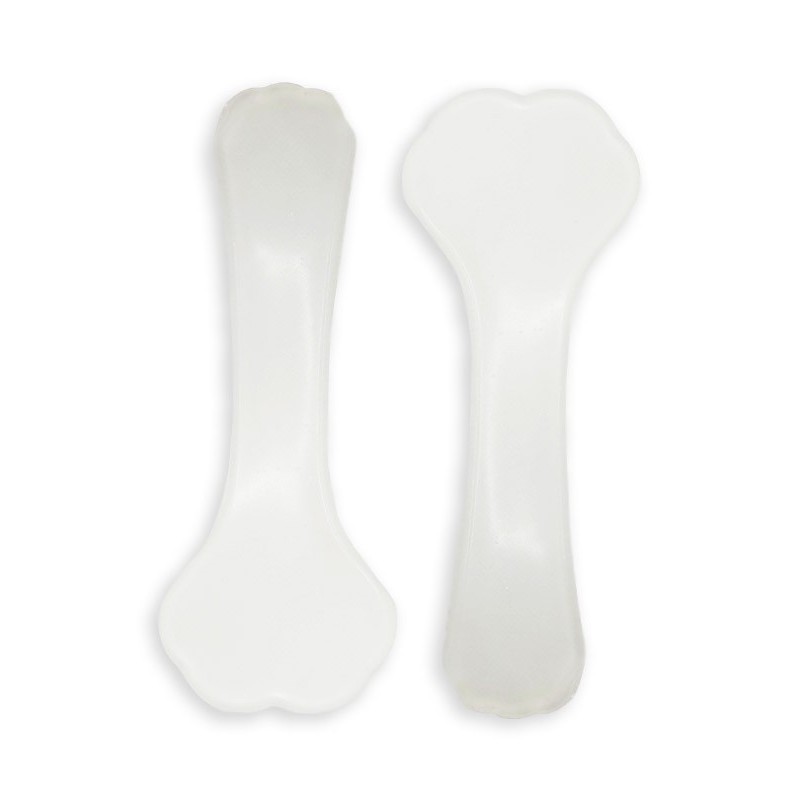 Son adhesivas, se adaptan perfectamente a la forma del calzado y del pie. Están formadas de gel polímero al 100%.